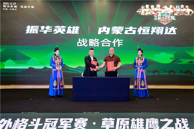 接着,振华英雄赛事组委会还分别与内蒙古恒翔达文化旅游有限公司、格斗迷平台进行了战略合作签约,将在赛事落地、媒体传播、选手招募等方面深度合作,共同推动格斗事业发展。